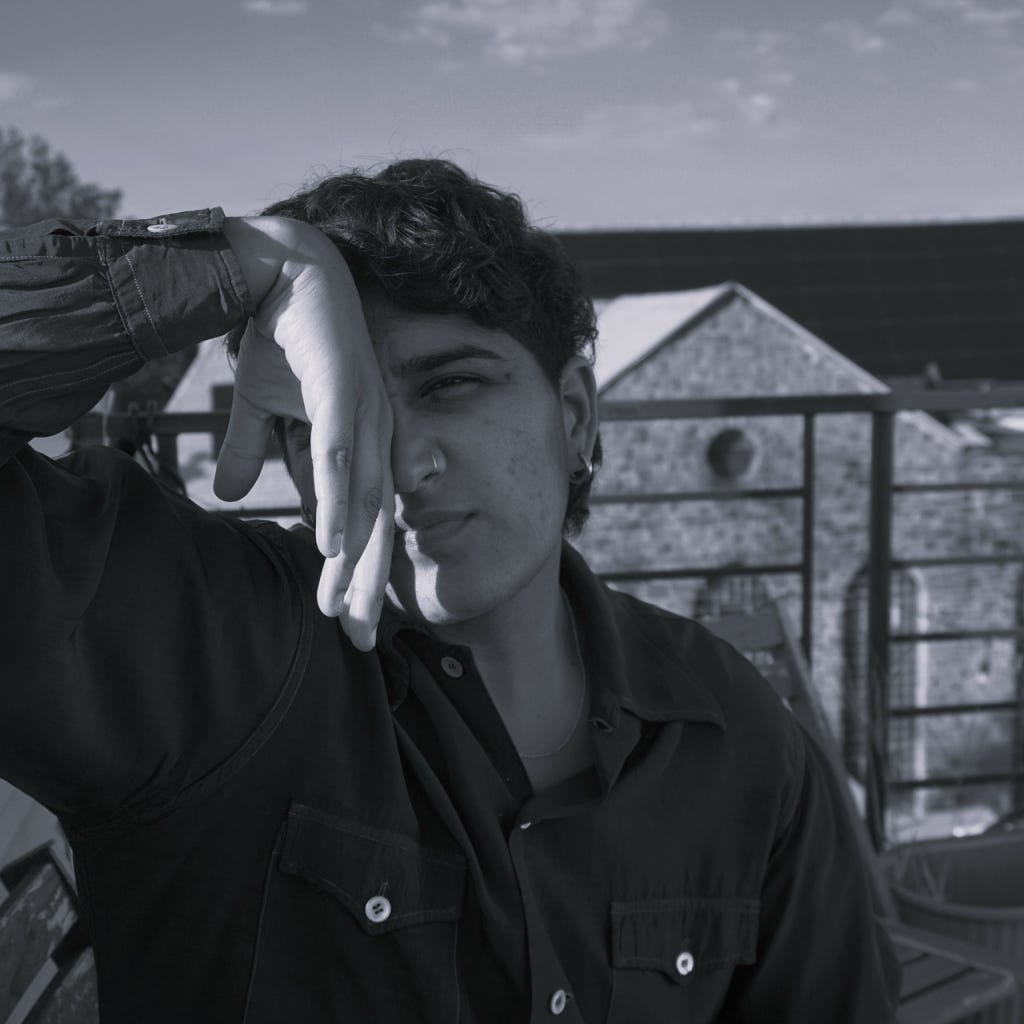 I sit at a precipice of myself, legs dangling. I am thinking about my childhood desk, the fuchsia and gold curtains beside it, Diwali firecrackers bursting behind them while I tried to record a video performing my poem for a spoken word contest on Tumblr. It was my first attempt at spoken word, and I remember winning, though I don’t remember the prize or the poem.